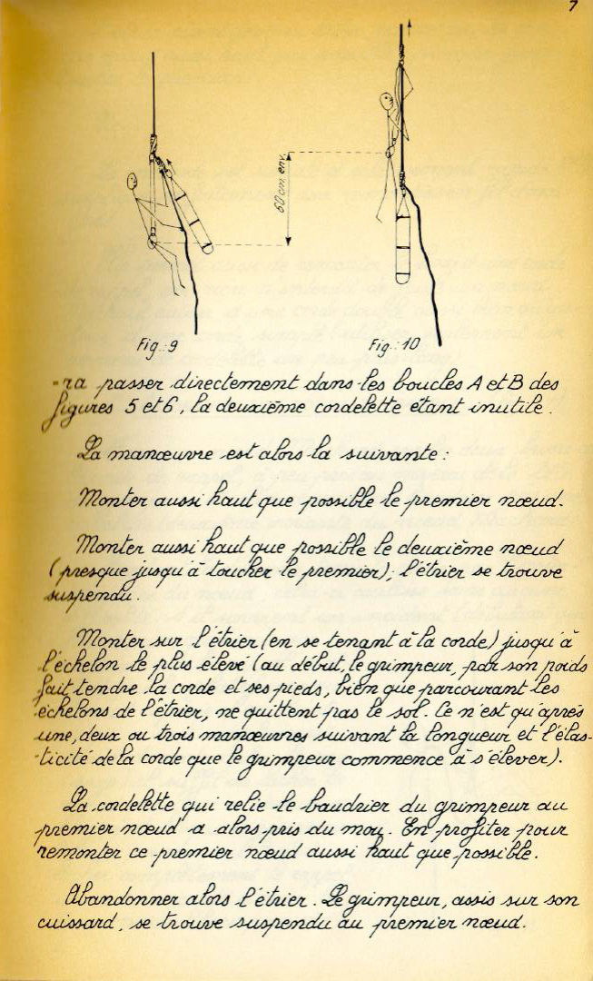 Notez qu’à l’époque, les descendeurs n’existaient pas et que les rappels se faisaient avec la corde autour du corps avec la technique dite en S.